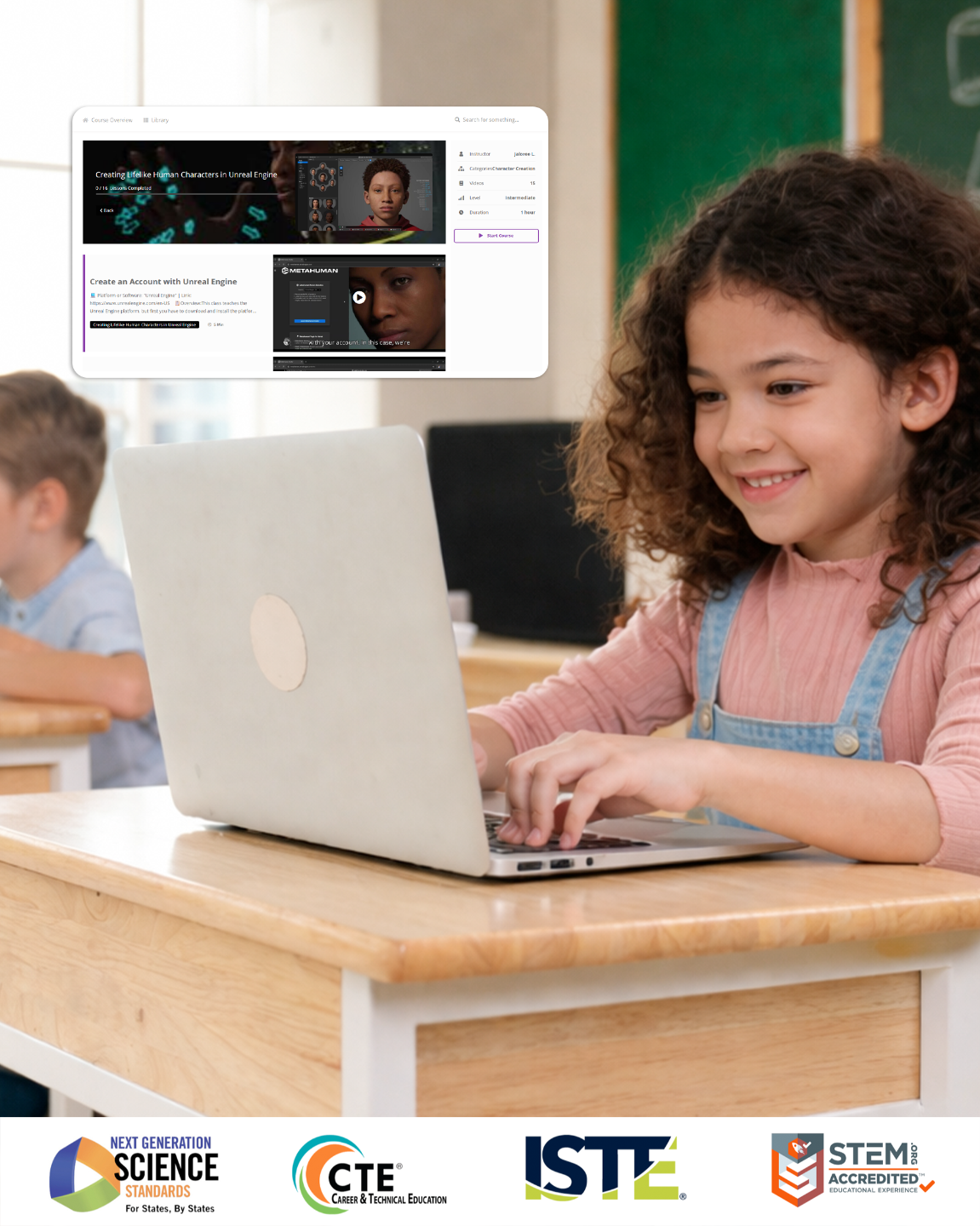- Curriculum aligned to ISTE Standards, CTE Career Pathways, Next Generation Science Standards (NGSS) & Workforce competency frameworks